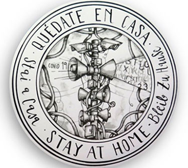 Quédate en casa / Stay at Home. Xavier Monsalvatje. Serigrafía a 4 tintas sobre papel Fabriano 350 gr.30,48 cm. Firmadas y numeradas por el artista. Edición de 120 ejemplares + 20 Pruebas de artista. Editada por Fabriquilla Edicions en los Talleres de Retinta Asociación Gráfica. Año 2020.